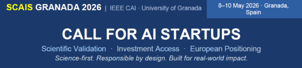 Welcome to SCAIS GRANADA 2026…the first Scientific Selection Criteria for IA STARTUPS…in the World!! SCAIS is part of IEEE CAI 2026, in cooperation with the Institute of Electrical and Electronics Engineers (IEEE) and the University of Granada (UGR).